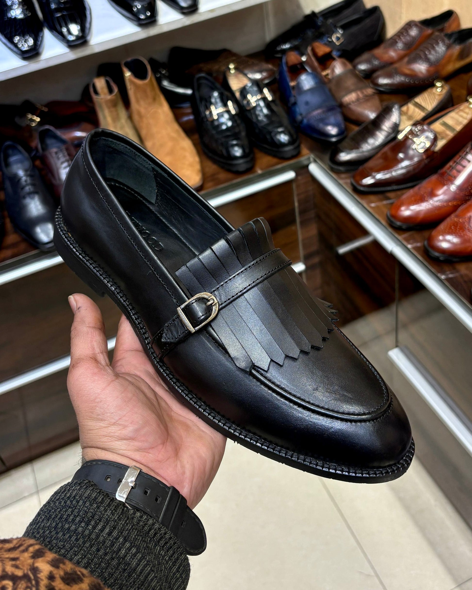 Black Fringe Loafers with Rubber Sole