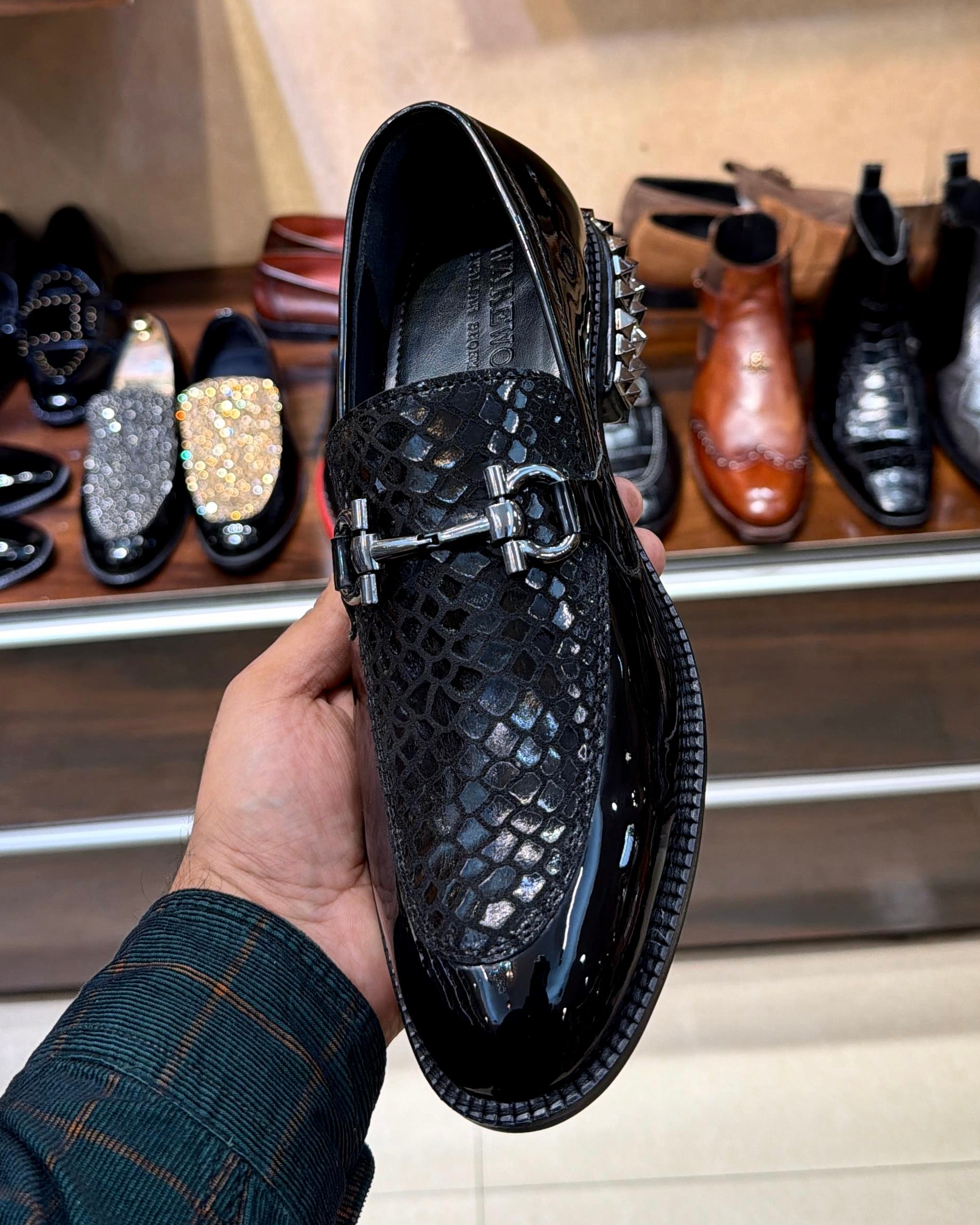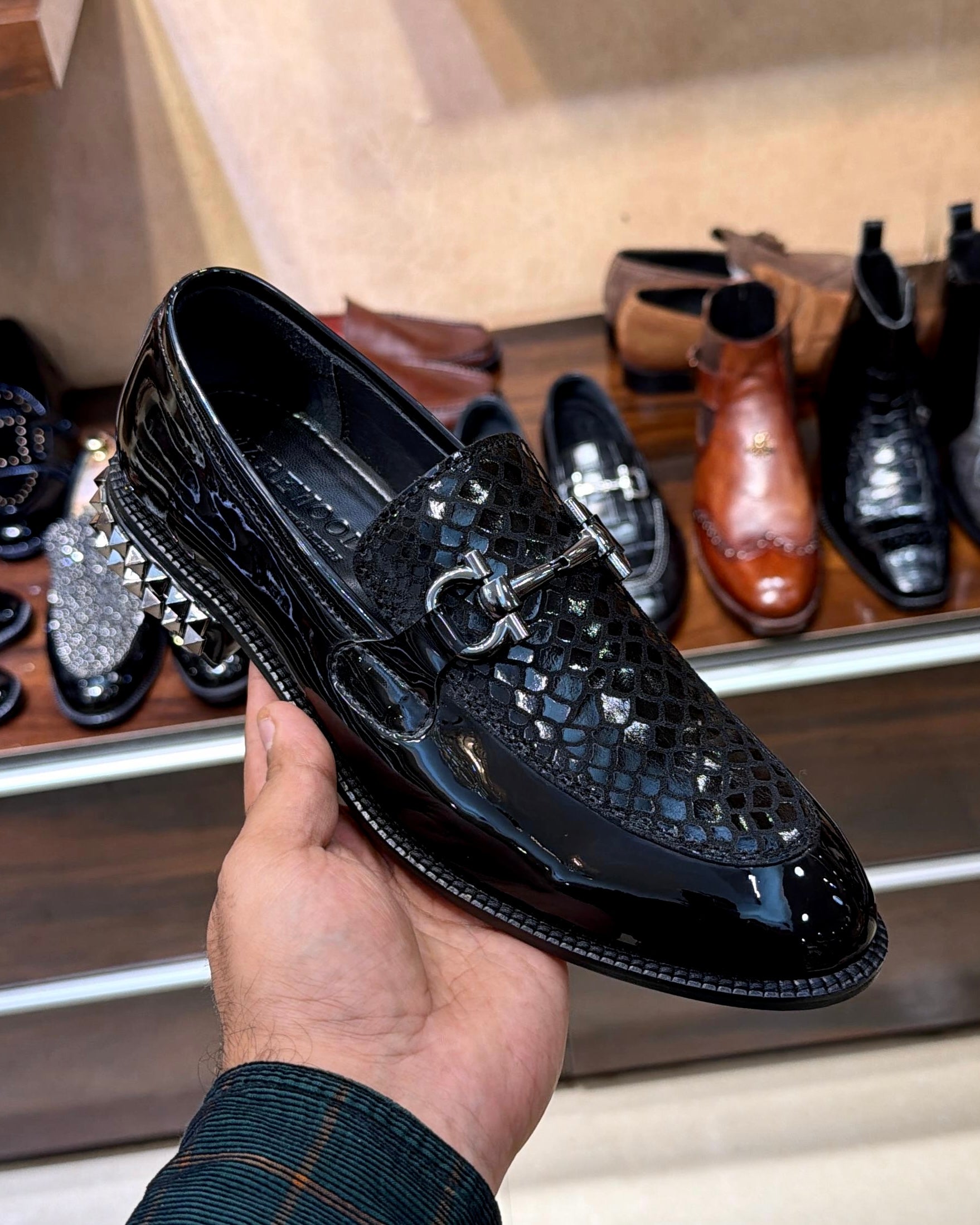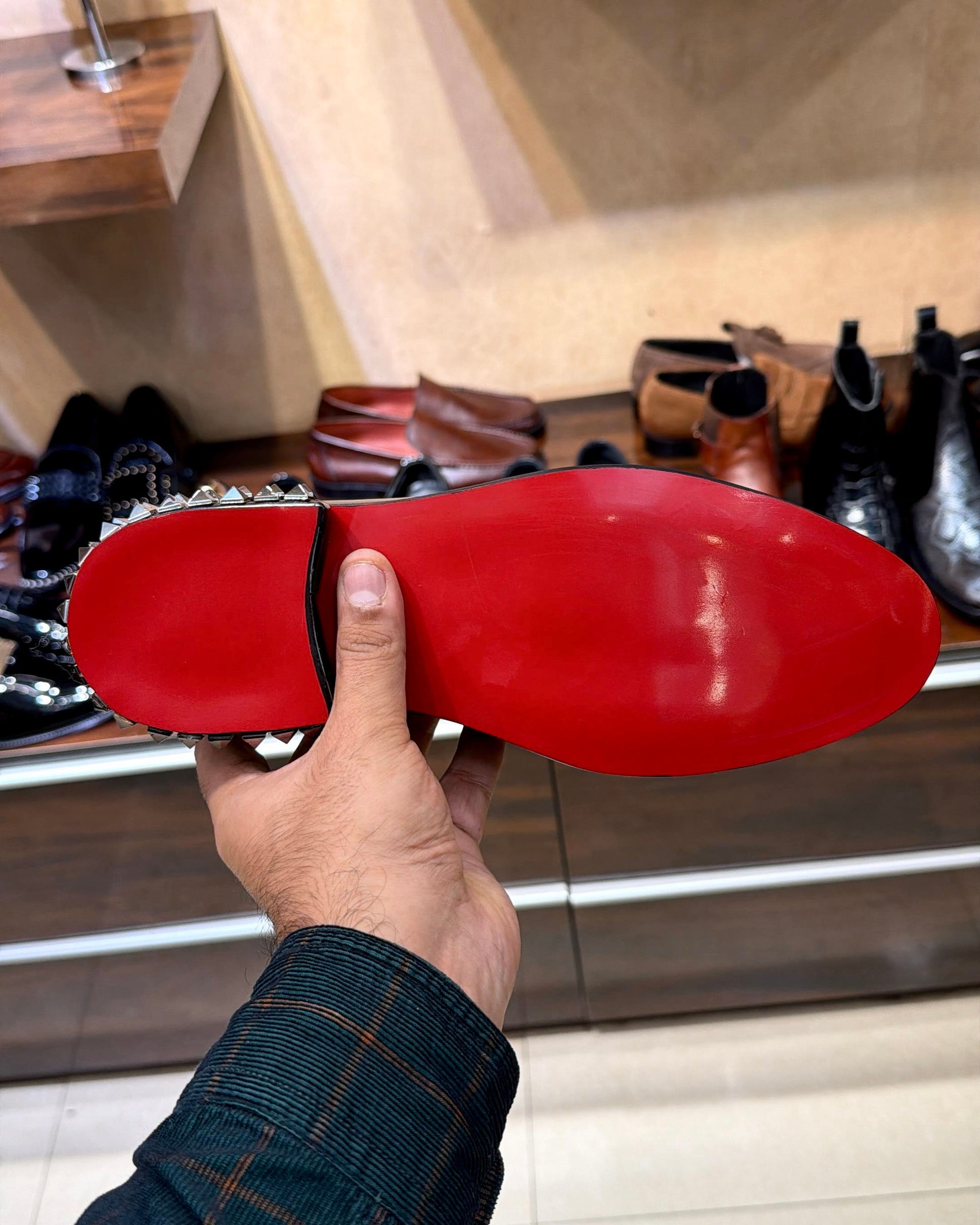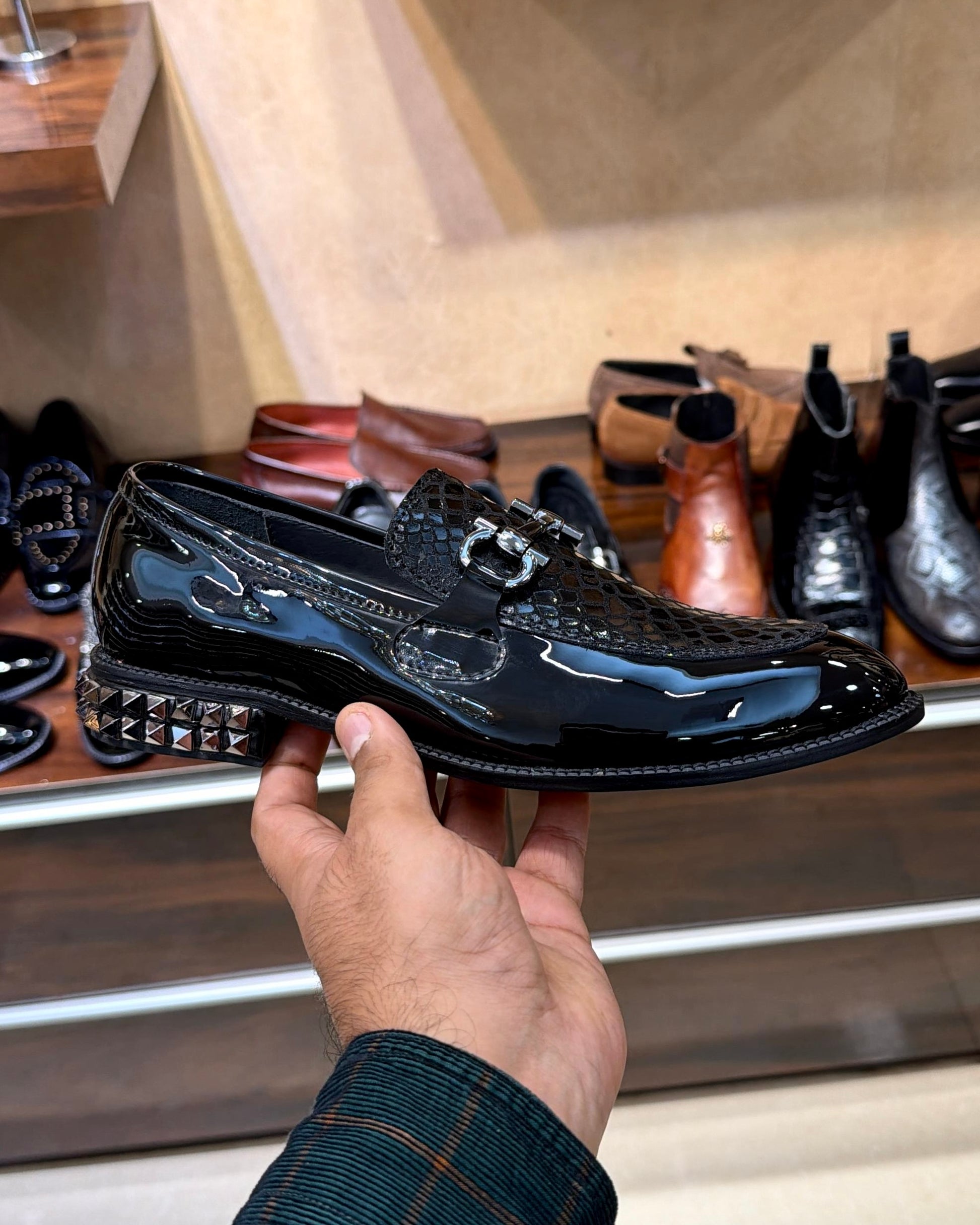 Signature Patent-snake Foil Studded Heel Red Bottom Moccasins