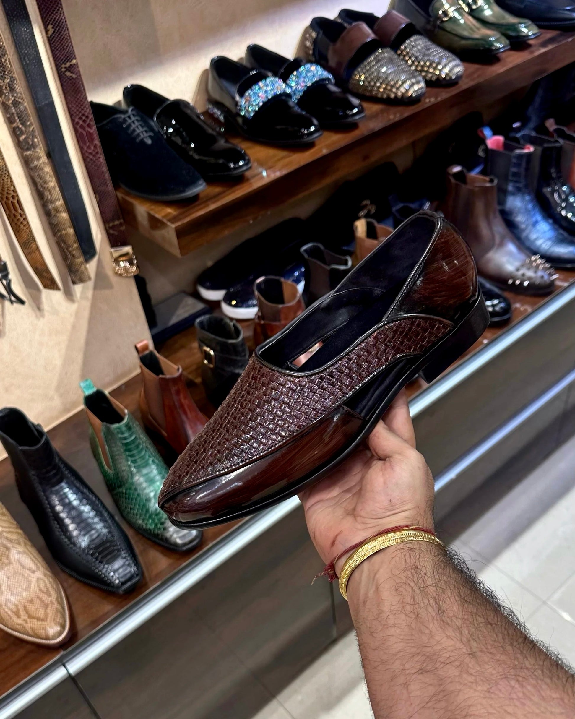 Dark Brown Braided Leather Brush-off Peshawaris